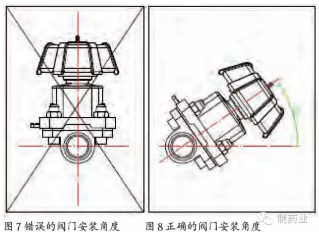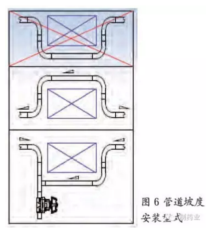 圖5所示的安裝方式管道的自排凈功能明顯一些,但基于現場安裝的限制,圖4所示的安裝有時也可以采用,只要經過驗證,對水質不會造成影響也是可以接受的。